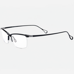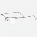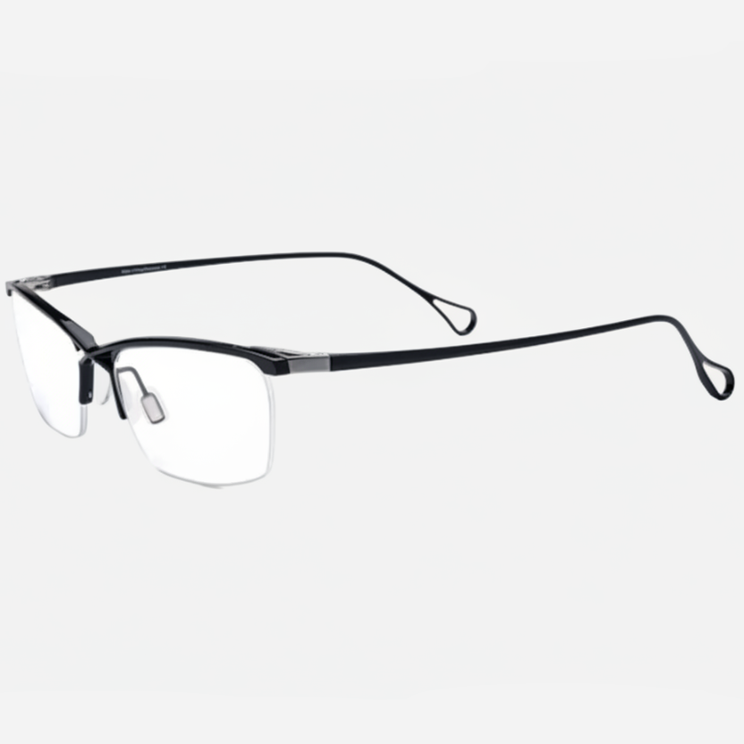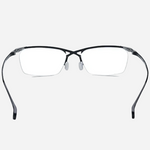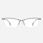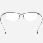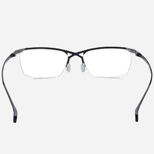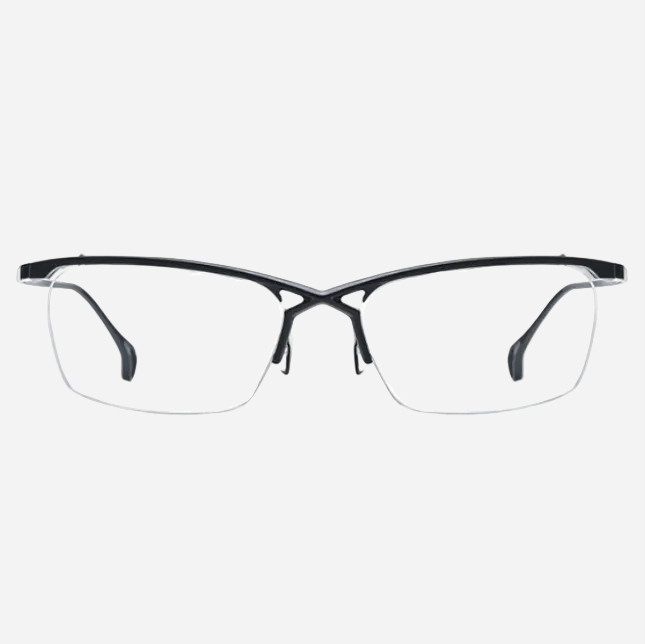 A pure-titanium browline men’s eyeglass frame featuring a fresh, fashionable design. Trendy and cool with a distinctive mech-inspired, futuristic aesthetic. The crossed bridge design adds a unique and eye-catching detail.