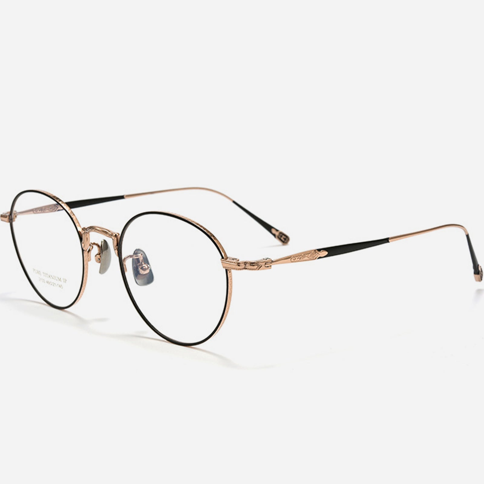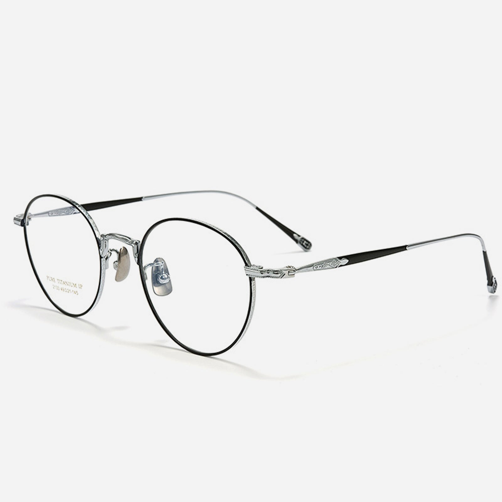 This men’s round frame is crafted from pure titanium, offering an ultra-lightweight feel with timeless durability. The refined vintage design is enhanced by delicate engraved details, adding a touch of sophistication and artistic charm.